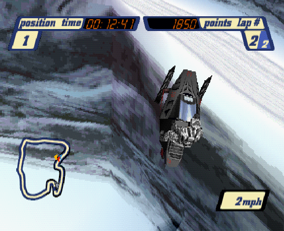 After i jumped over the finish line i get into a weird backwards wallride that does not need any input. it's sometimes hard to tell where your sled is at some points, because you are either going so fast with the handling cheat or you are out of bounds, making you question the existence of a camera.