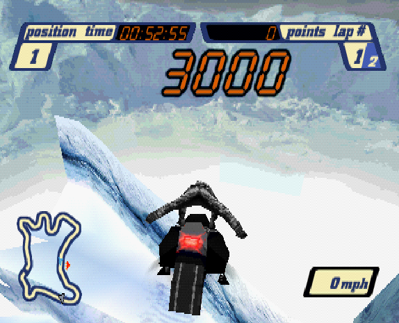 Im not sure how the judges will feel about this Tas using a savestate, but its better than starting over, thanks for watching. This tas covers the Open Mountain Tracks and not Super Snocross, Super Snocross are too simple without any shortcuts.