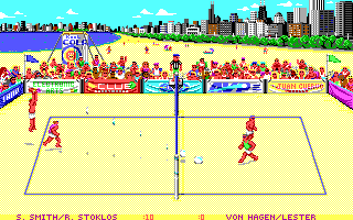 Kings of the Beach is a beach volleyball game that was developed by Electronic Arts for DOS computers. It was also ported to the NES by Konami. The game features professional volleyball players from the '80s that you can play as and against. It also features characters from EA's other games such Skate or Die and Ski or Die. The gameplay features standard volleyball elements, with bump passing, spiking, and blocking. You can also contest point calls with the referee to get points overturned in your favor.